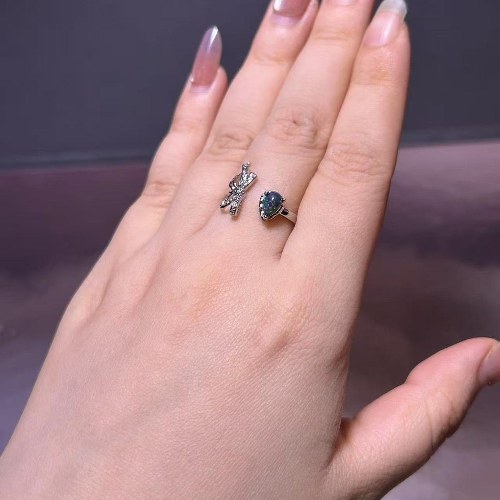 Кольцо с натуральным эфиопским черным опалом Изысканное кольцо