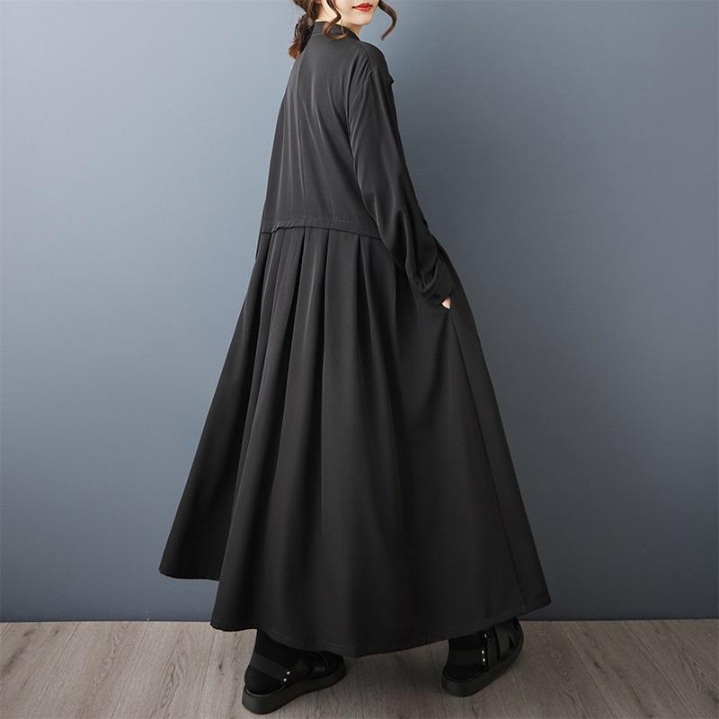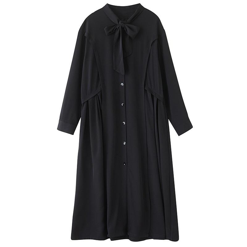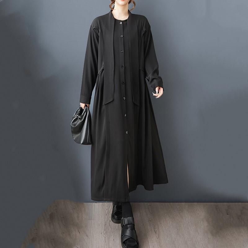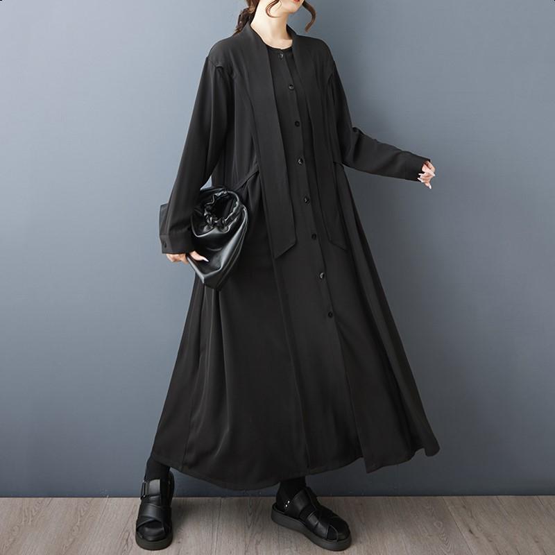 Платья с длинным рукавом черные винтажные новые для женщин повседневные свободные весенне-осенние платья-рубашки