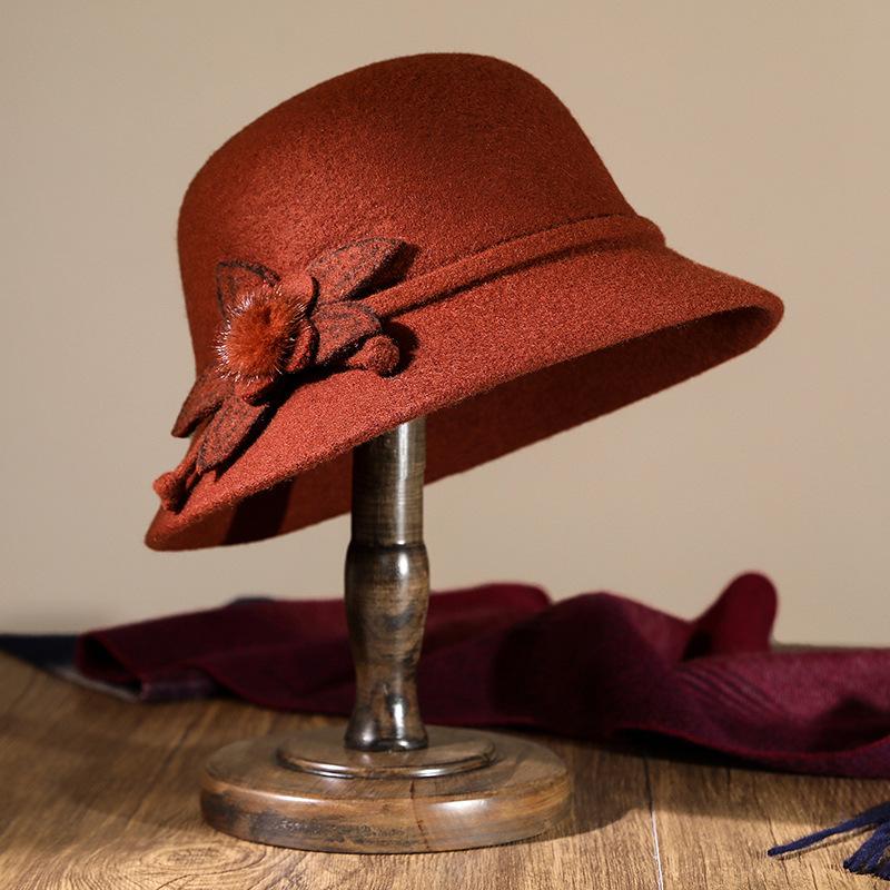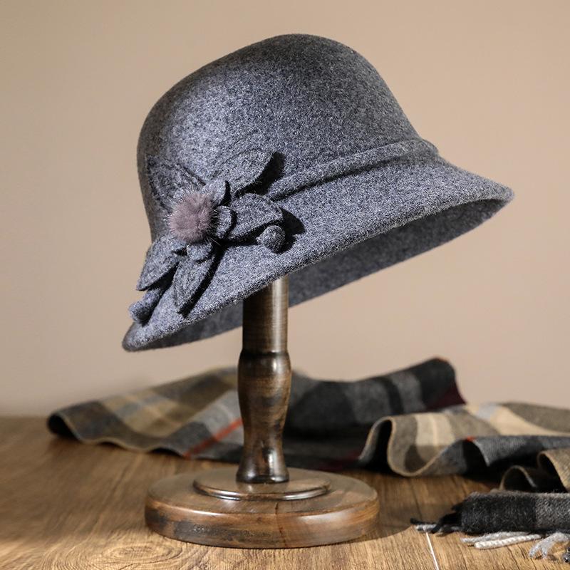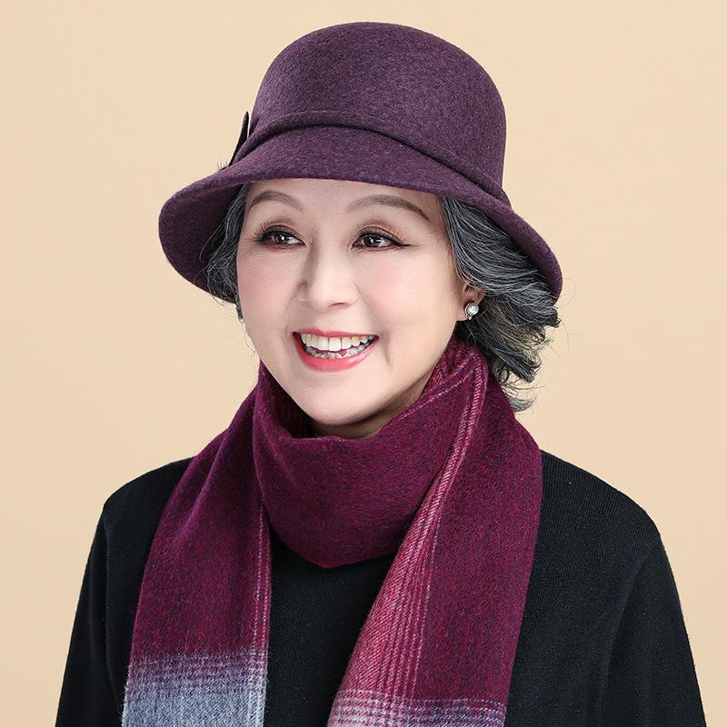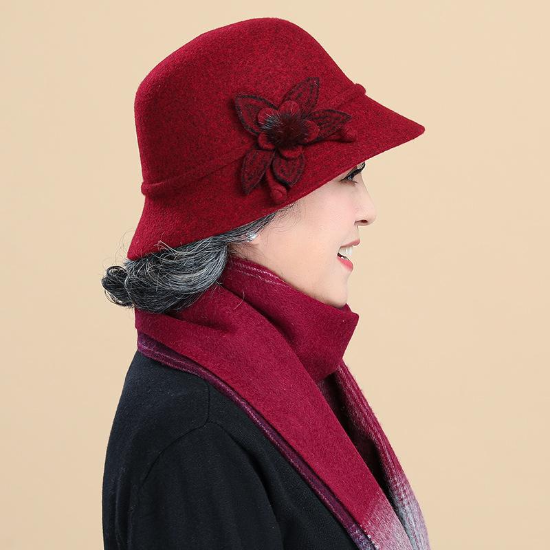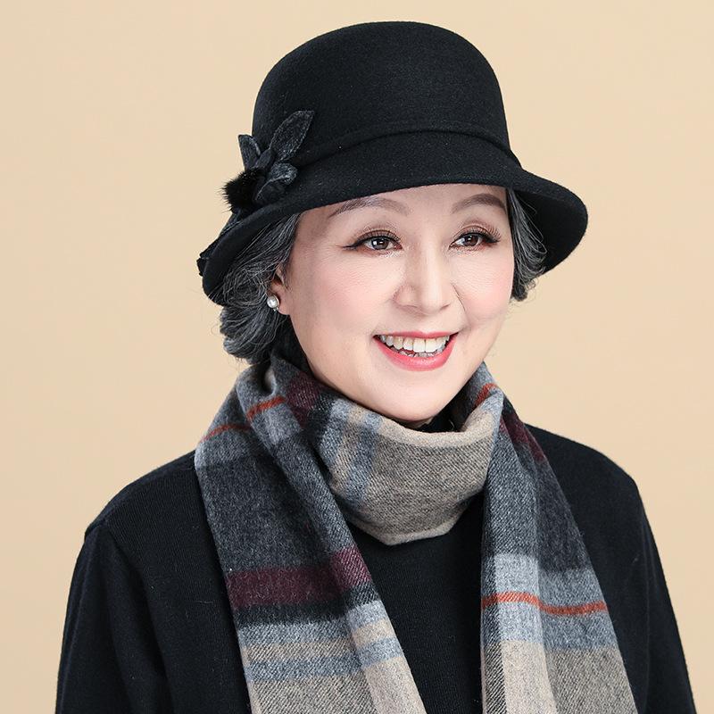Шерстяная шляпа женская осенне-зимняя шляпа-ведро для мамы для пожилых людей шляпа-цилиндр утолщенная теплая шляпа-таз для пожилой бабушки