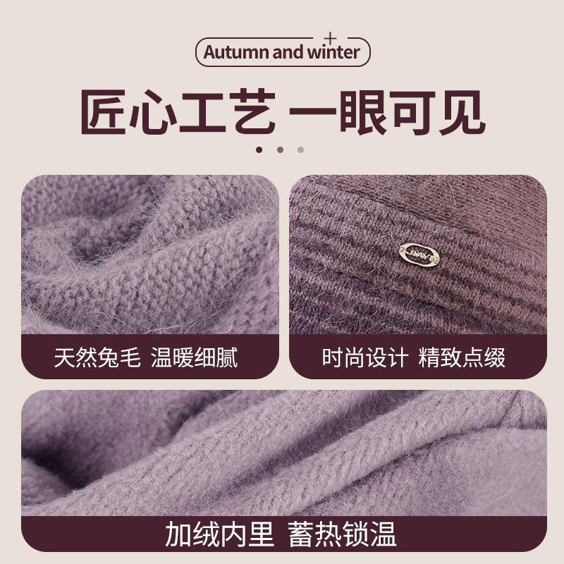 Medium mother hat Female fleece thickened rabbit fur warm wool hat Medium elderly grandmother cotton hat Knitted hat
