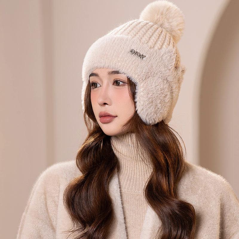 Флисовая теплая вязаная шапка с защитой ушей, женская зимняя ветрозащитная шапка-пуловер из шерсти, спортивная плюшевая шапка для активного отдыха и велоспорта