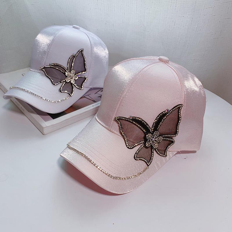 Шляпа Женская Повседневная Весенне-Летняя Кепка Бейсболка Мерсеризованный Сатин Бабочка Стразы Женская Кепка Лето 1