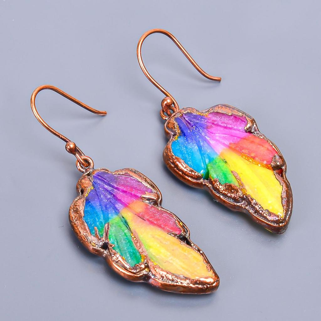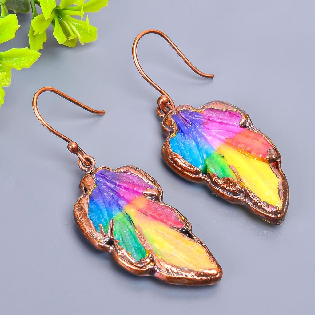 Натуральный Радужный Солнечный Кварц Медь День Рождения Висячие Серьги Капли Этнические Украшения V-2