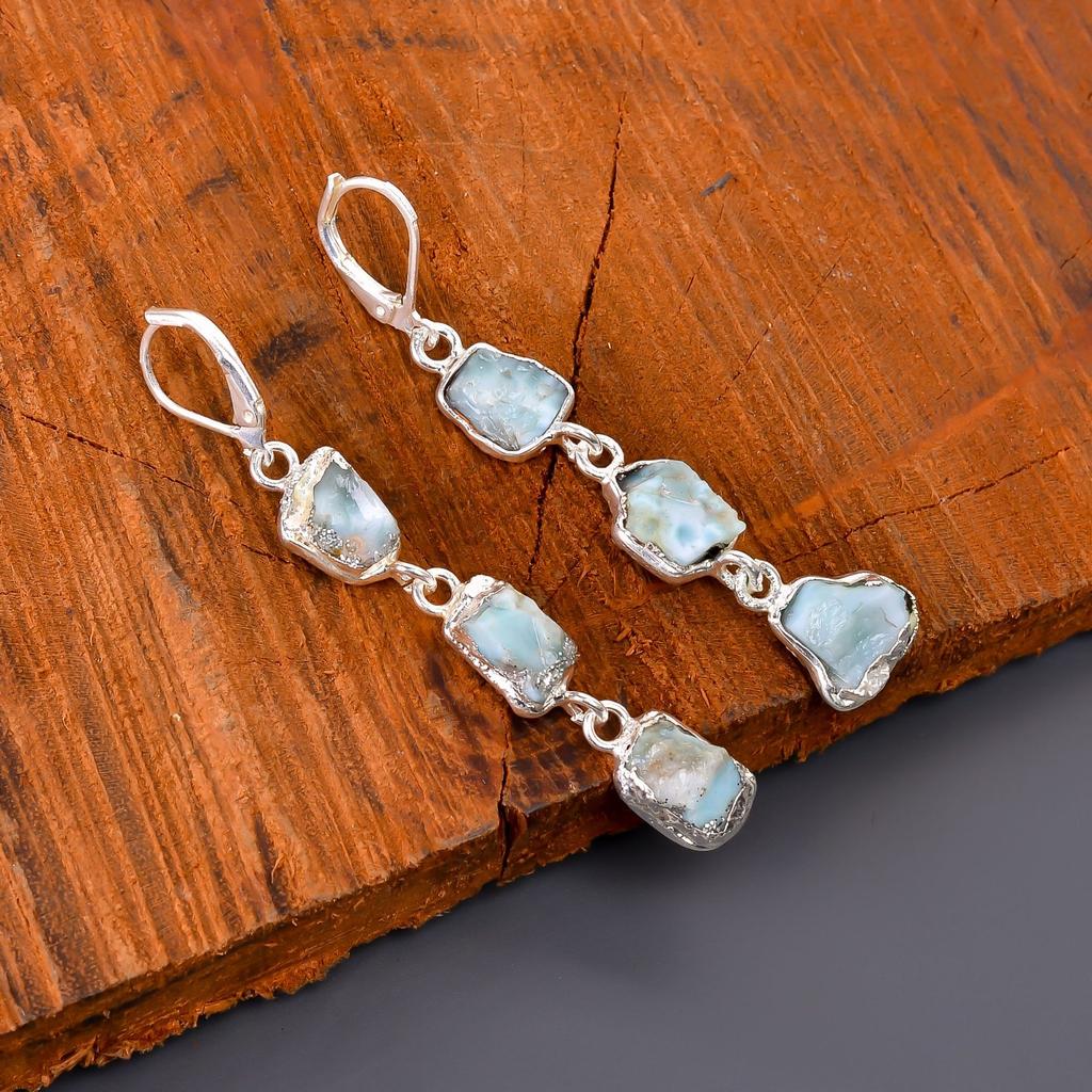Ларимар Камень Посеребренный Юбилей Электроформованные Подвесные Серьги Подарок Жене V-101