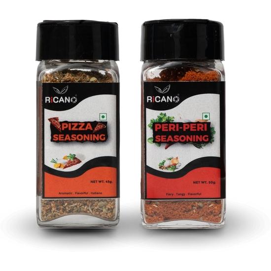 Смесь для пиццы Ricano 45г и Пери Пери 50г Комбо (Упаковка из 2 шт.) | Масала Пири Пири | Моментальная смесь | Идеально для картофеля фри, попкорна, пиццы, приправа для пасты