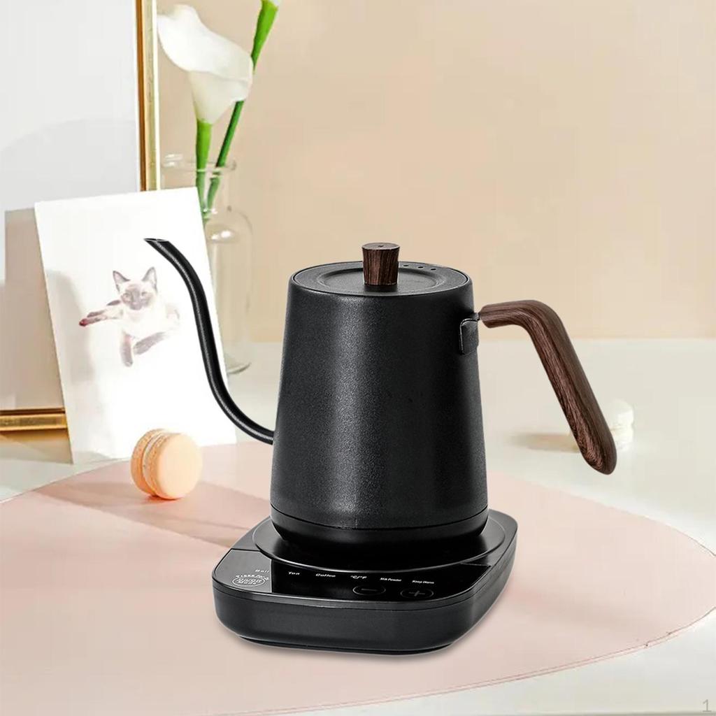 - 【Быстрое закипание и простота использования】: Электрический чайник с гусиным носом мощностью 1000 Вт, быстро нагревающийся, кипящий за 4 минуты, экономящий время. Он также предотвращает пригорание, поддерживает тепло 24 часа, водонепроницаем, что делает его важным инструментом как для начинающих, так и для профессиональных бариста.