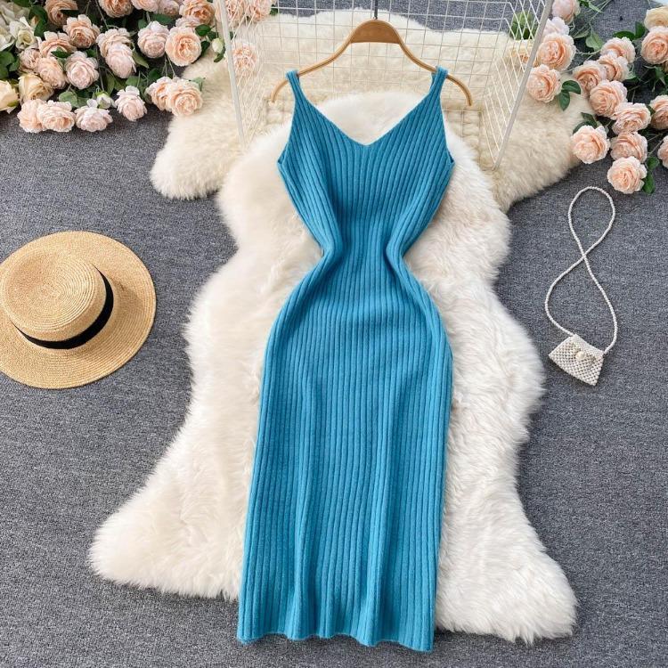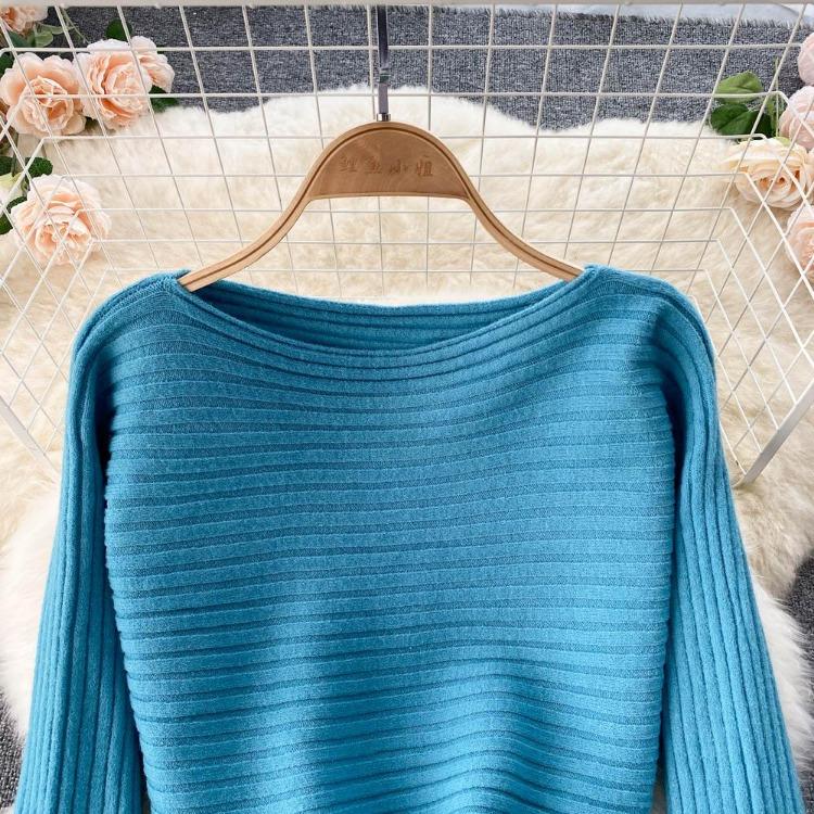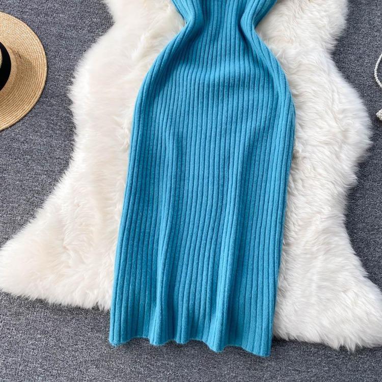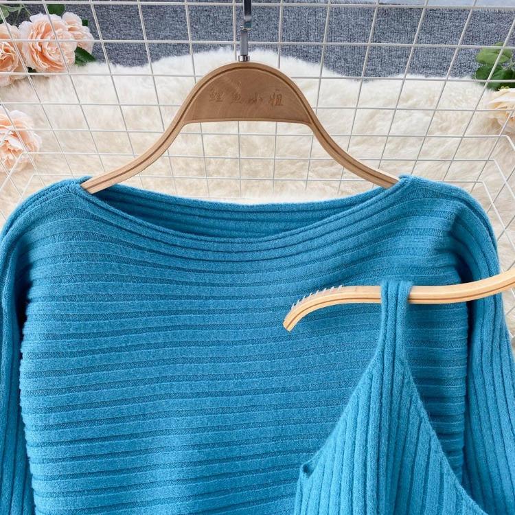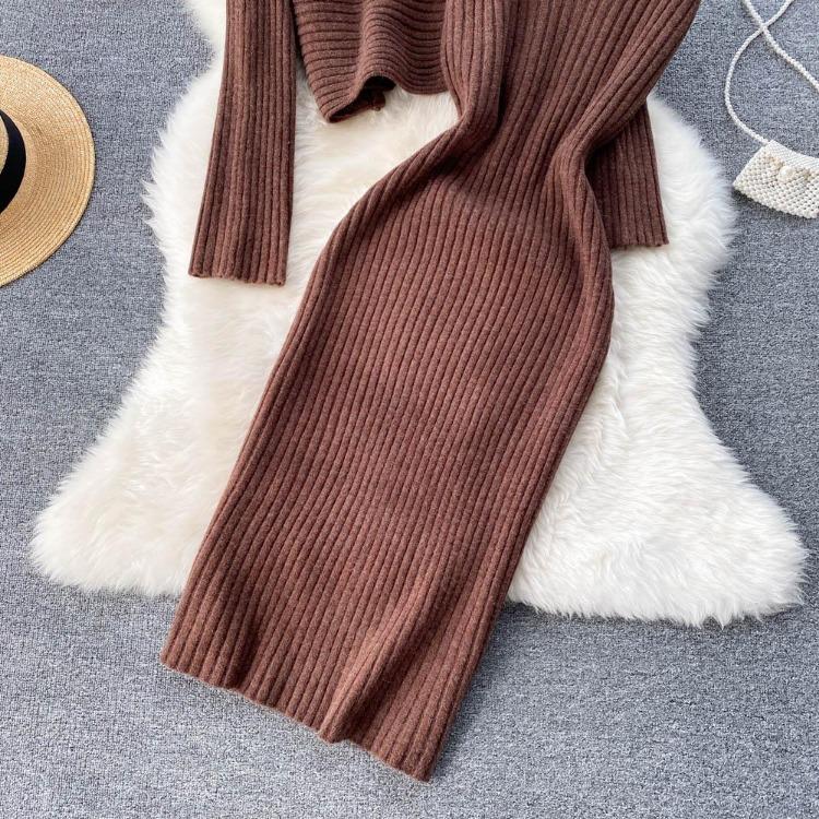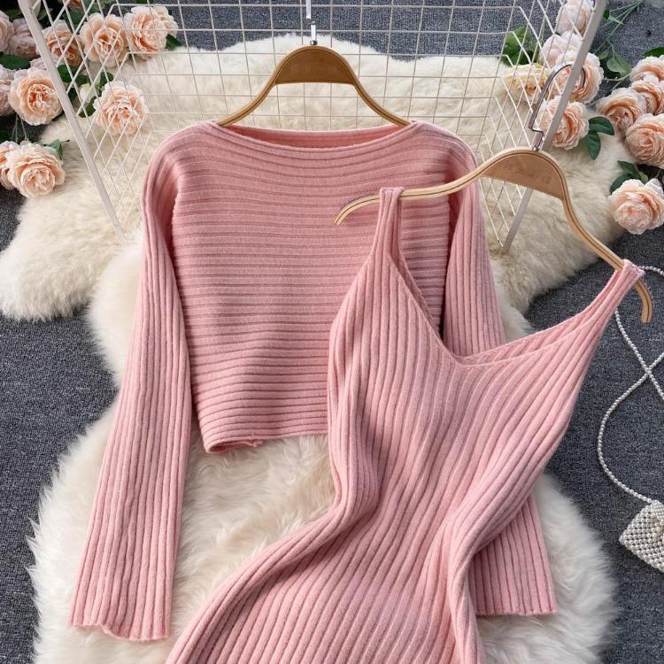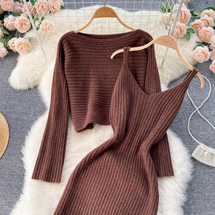 Женский осенне-зимний вязаный комплект, облегающий однотонный костюм-двойка, универсальный кроп-свитер, платье-хипстер для леди