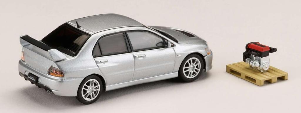 HJ64 Mitsubishi Lancer Evolution 9 GSR с дисплеем двигателя, цвет "Крутой серебристый", модель 1/64, металлик,
