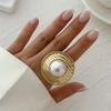 Женские модные ювелирные изделия, овальные кольца с геометрическим рисунком, креативные регулируемые кольца на палец с искусственным жемчугом, винтажные подарки для вечеринки