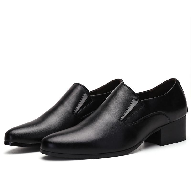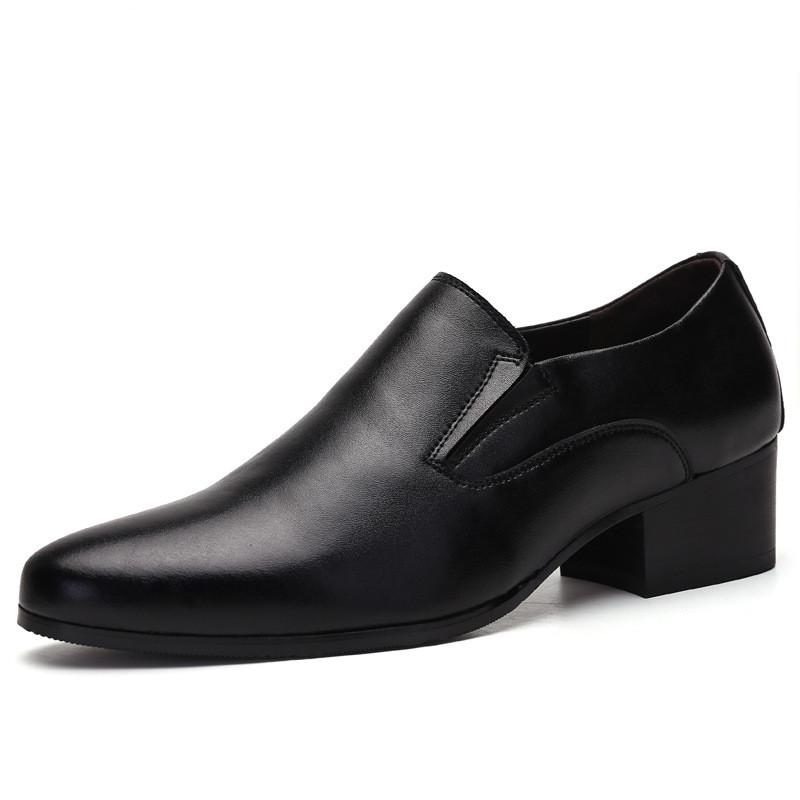 Мужские деловые туфли на высоком каблуке 6-8 см, слипоны с острым носком, из коровьей кожи, классические мужские формальные оксфорды, черные