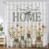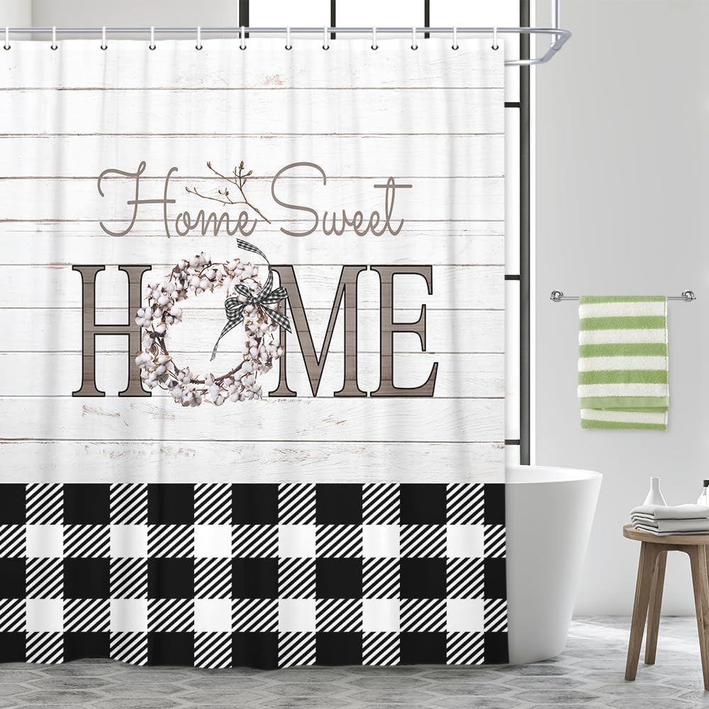 MERCHR Buffalo Check Plaid Shower Curtain 72 x 72 Inch, Farmhouse Wooden Board Shower Curtain, Rustic Flower Home Sweet Home Bath Curtain Polyester