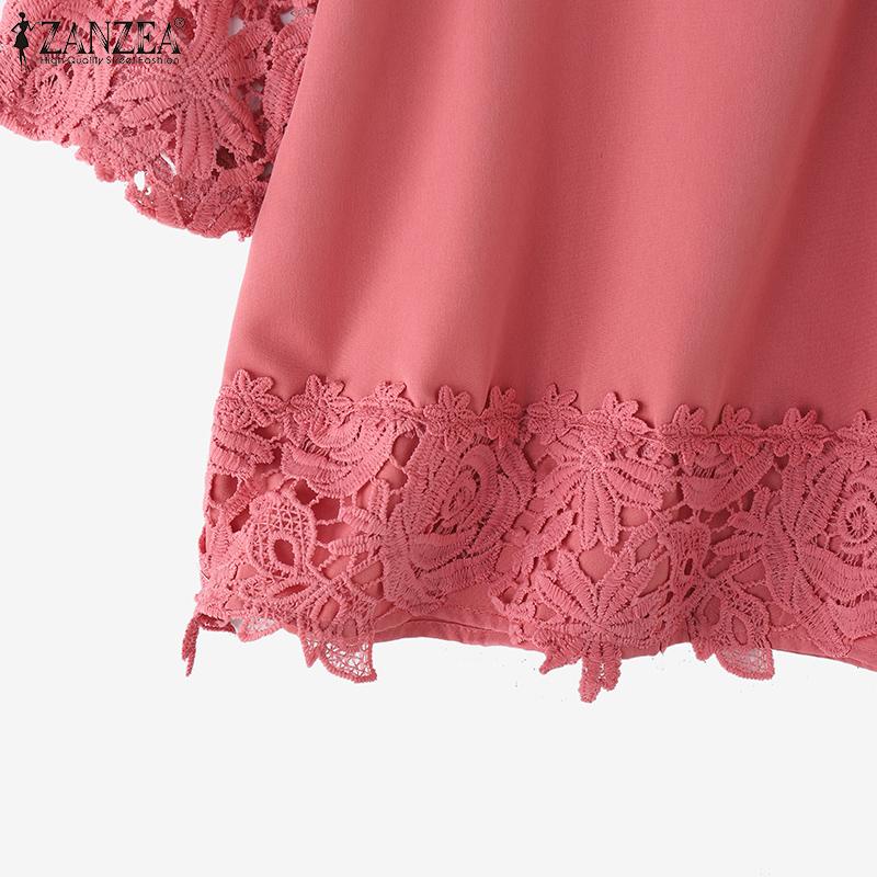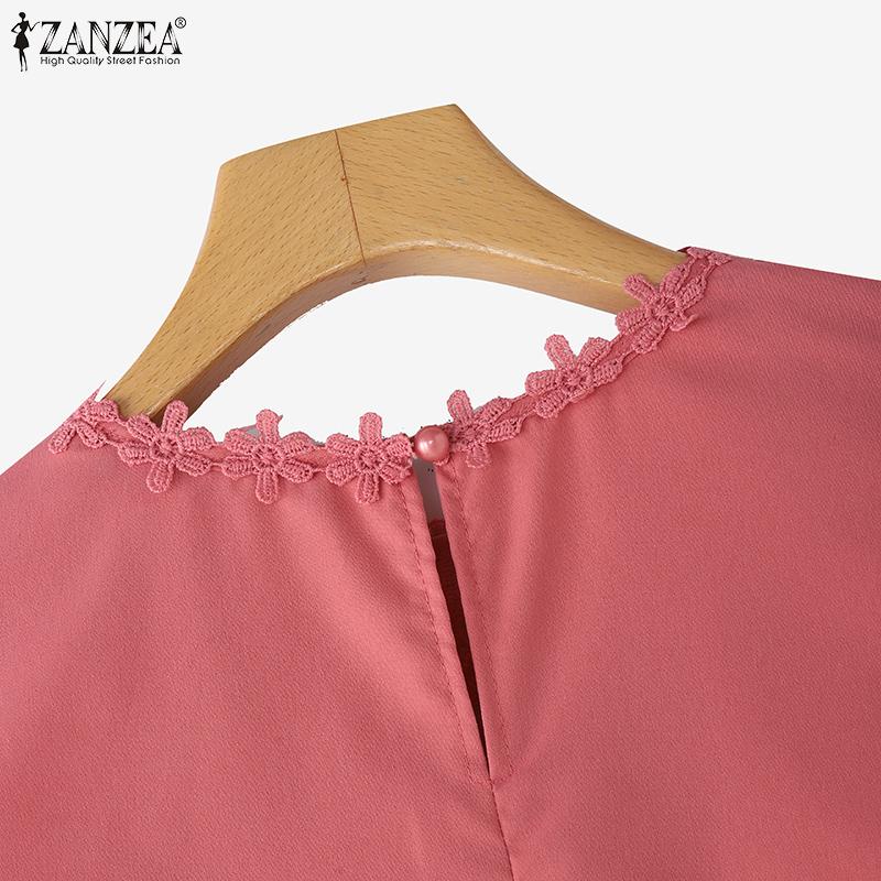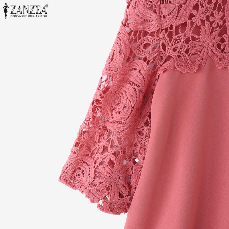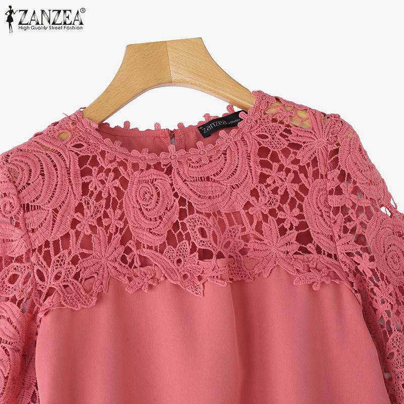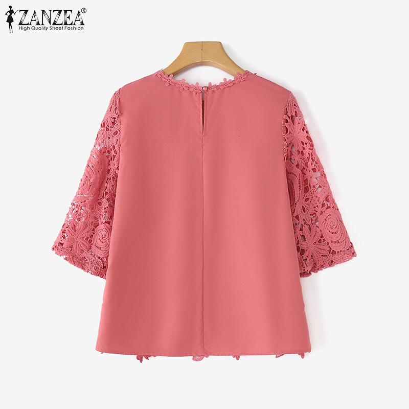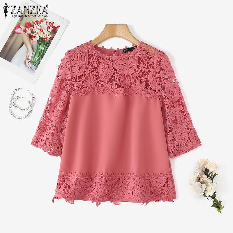 ZANZEA Женская летняя блузка с кружевной вязкой пэчворк, рукав 3/4, повседневная