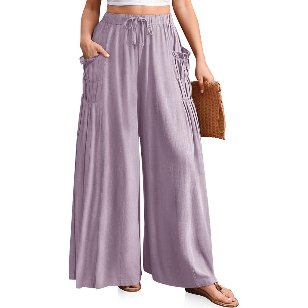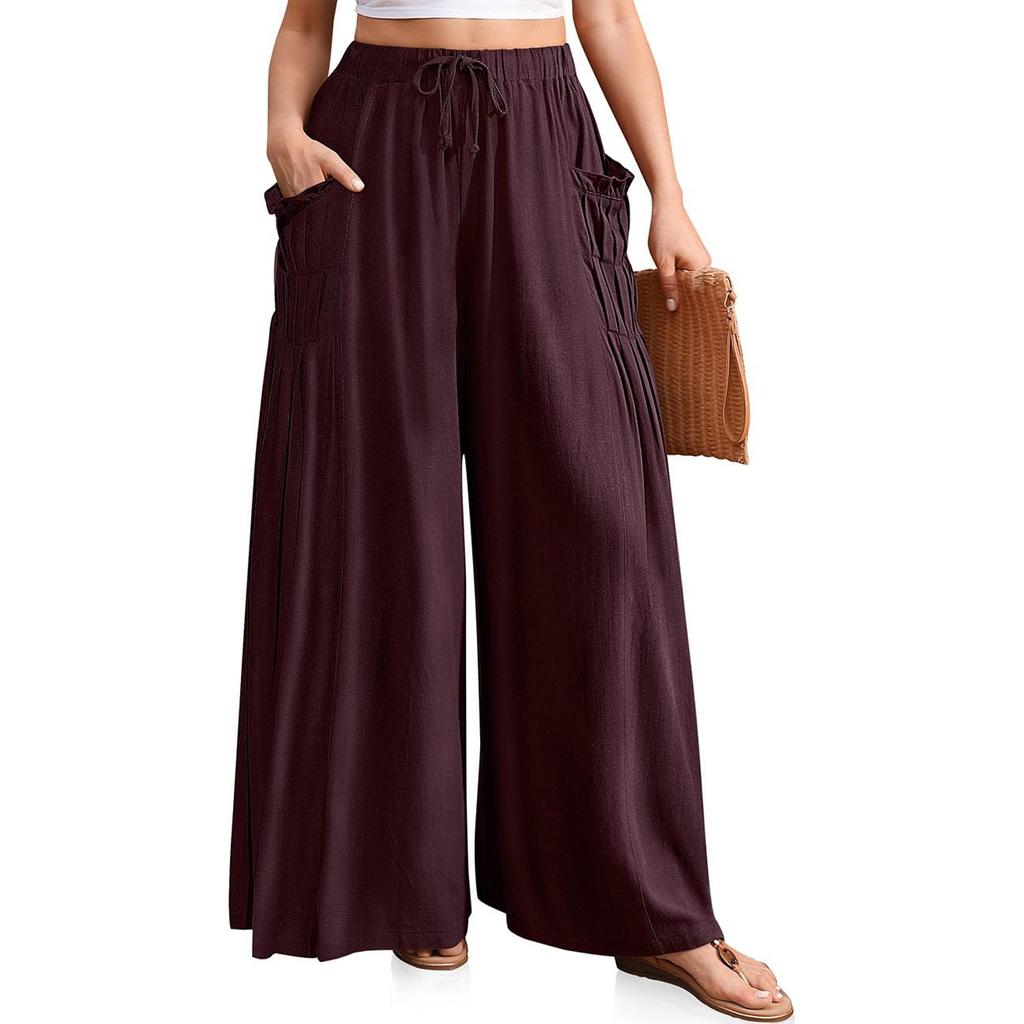 Женские однотонные брюки с плиссированной талией, свободные, с широкими штанинами и прямыми штанинами