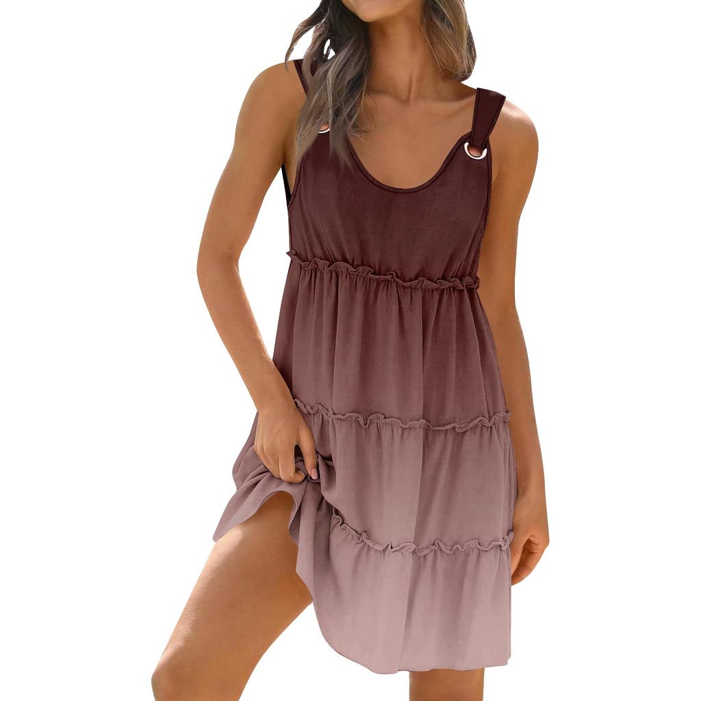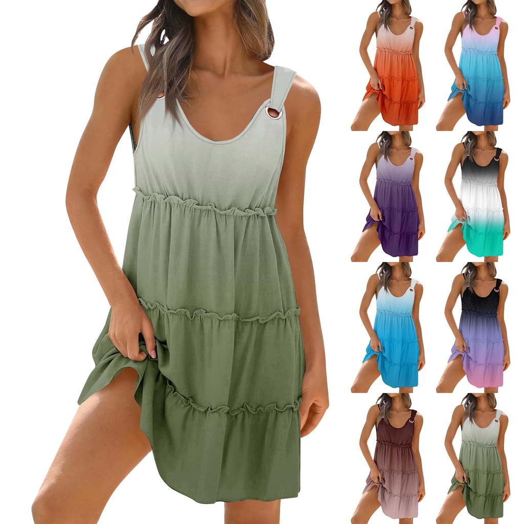 Женское повседневное платье для свиданий, выходов, модное, с принтом, базовое, без рукавов, свободное платье, бохо, пляжное платье, платье без рукавов