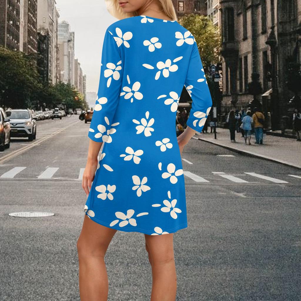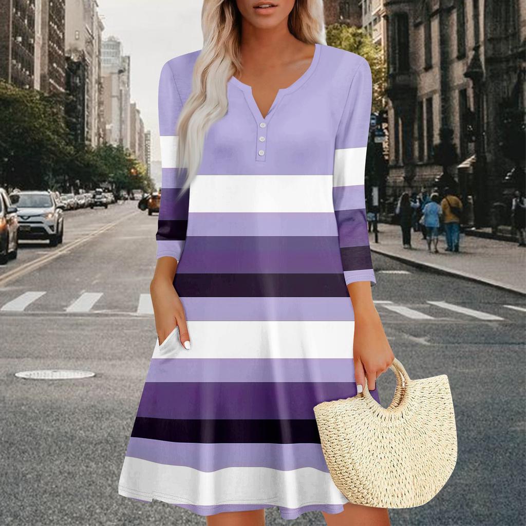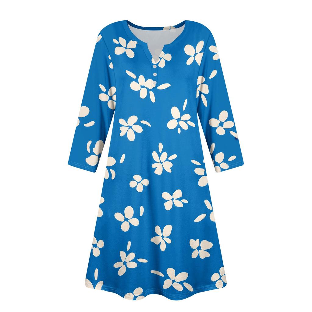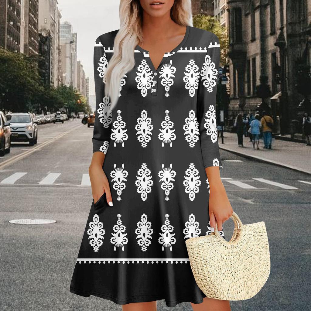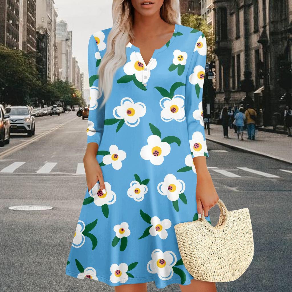 Женское летнее платье, свободное платье с V-образным вырезом, рукавом три четверти и карманами