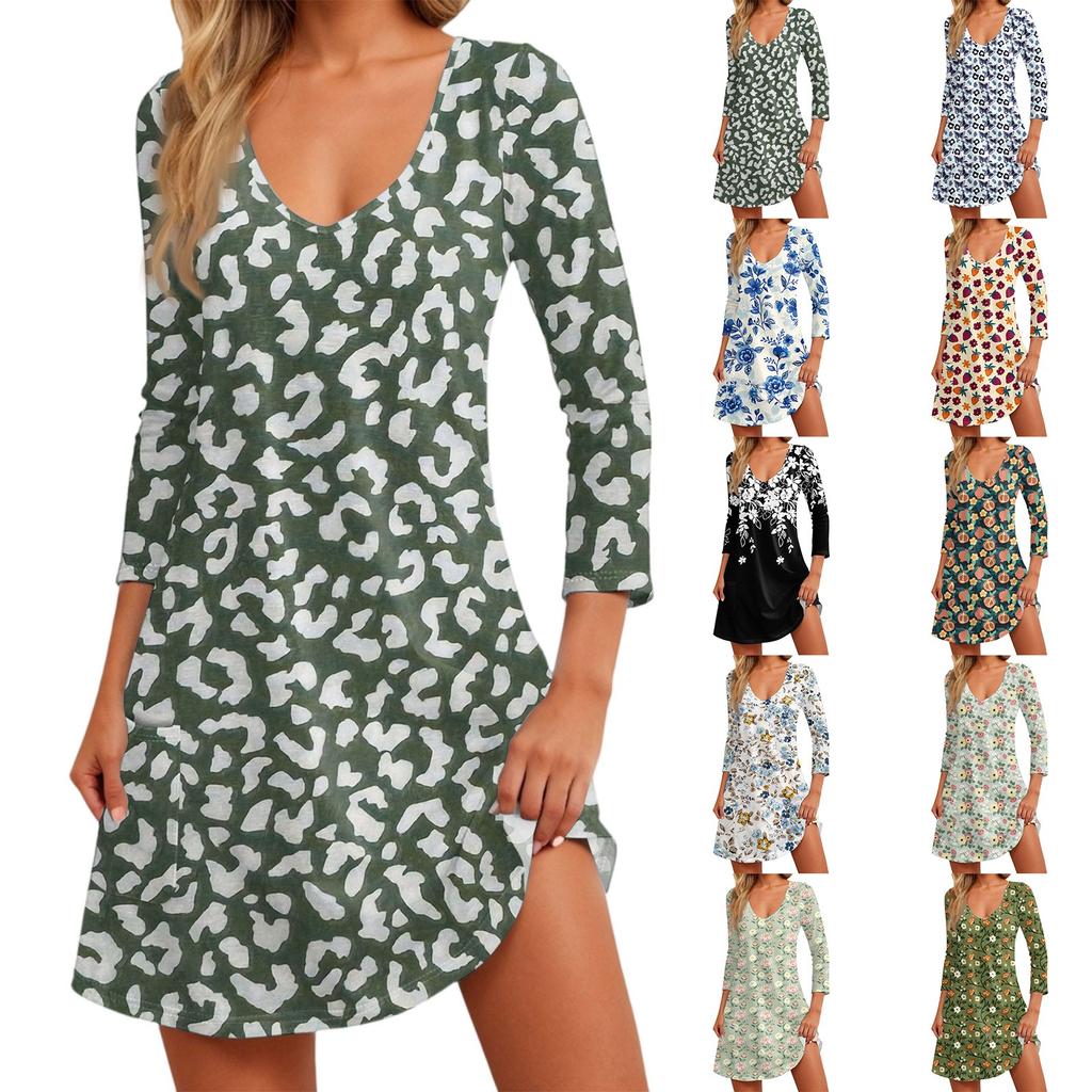 Женское модное повседневное платье с V-образным вырезом, цветочным принтом, карманом и рукавом три четверти — купить товар онлайн с бесплатной доставкой по всему миру!