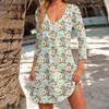 Женское модное повседневное платье с V-образным вырезом, цветочным принтом, карманом и рукавом три четверти