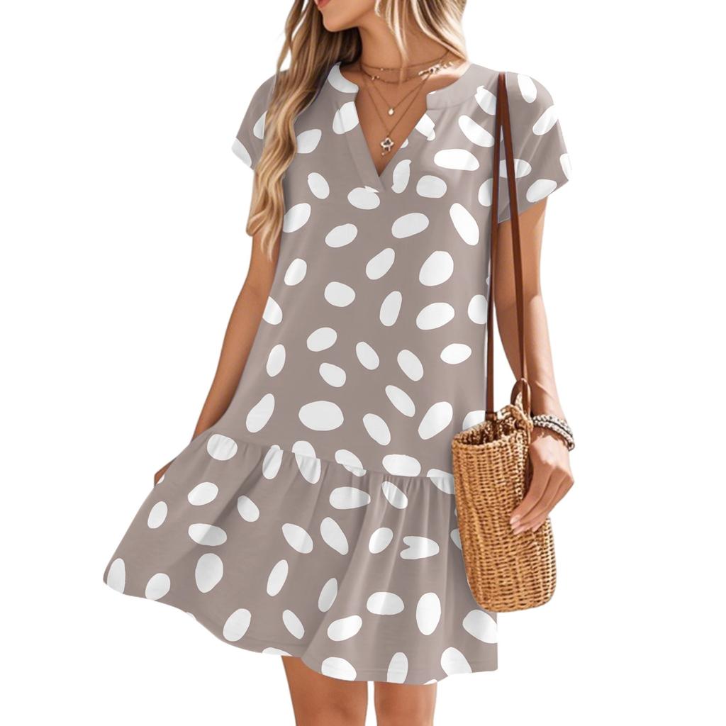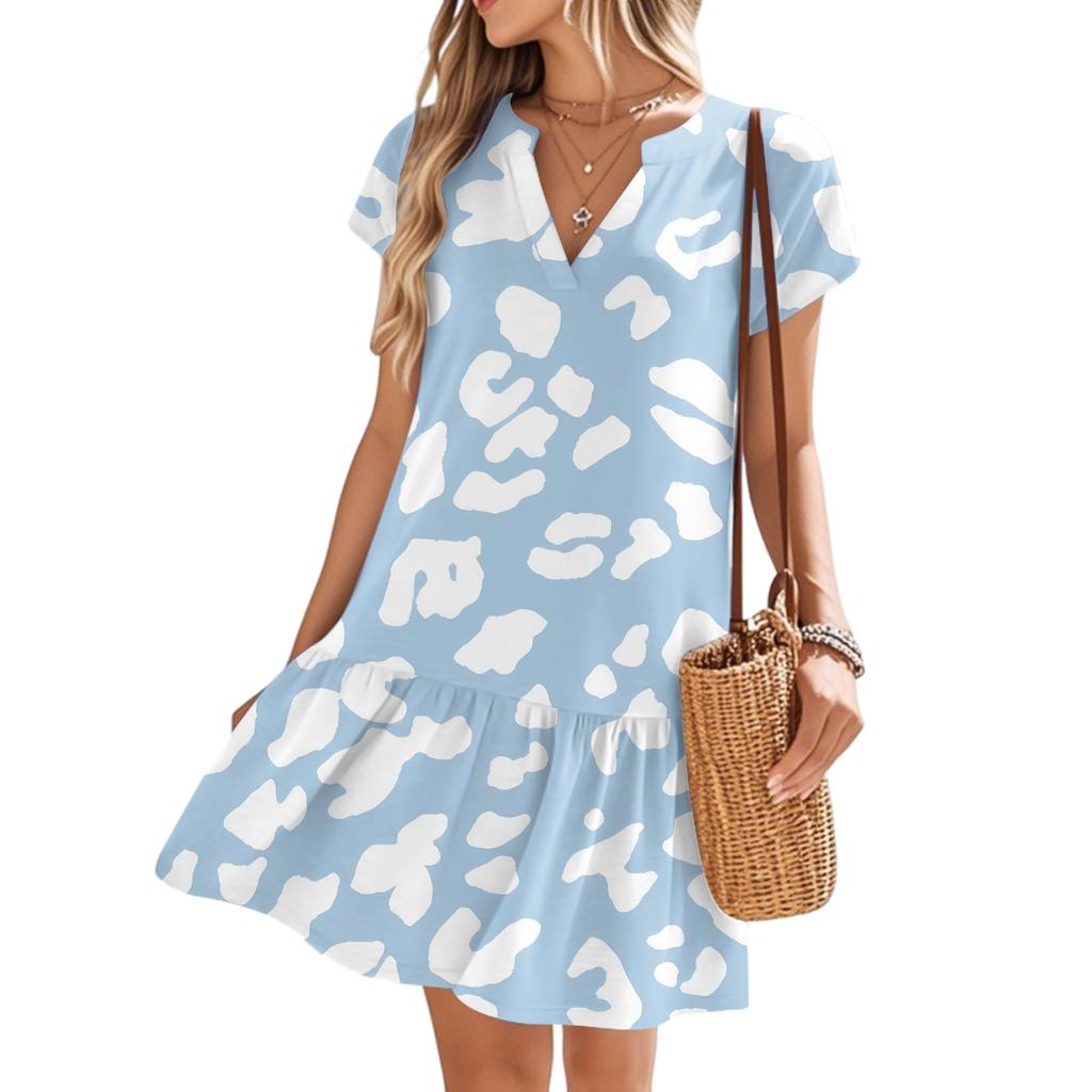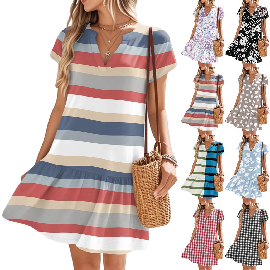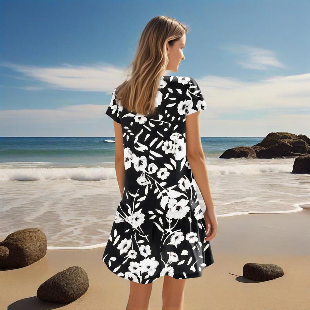 Женские платья с коротким рукавом и V-образным вырезом с цветочным принтом Свободные повседневные пляжные платья в стиле темперамент