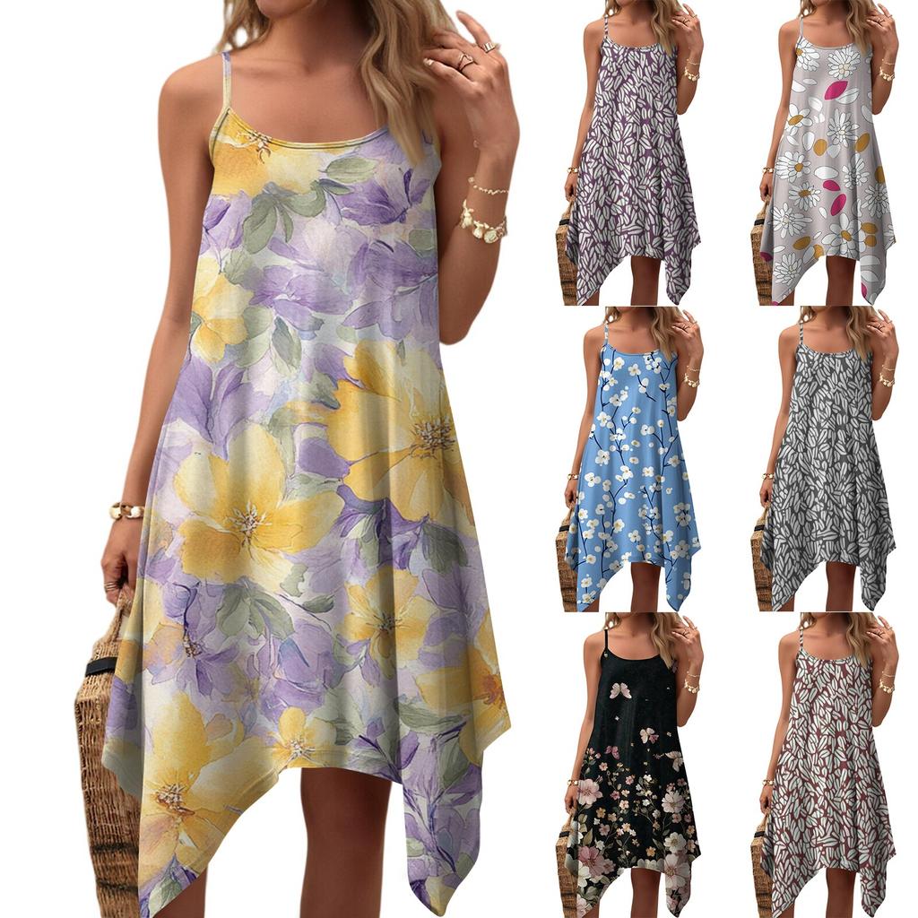 Женское летнее повседневное винтажное платье с цветочным принтом, круглым вырезом, регулируемыми подтяжками и карманами — купить товар онлайн с бесплатной доставкой по всему миру!