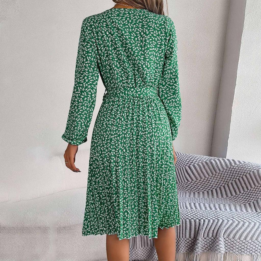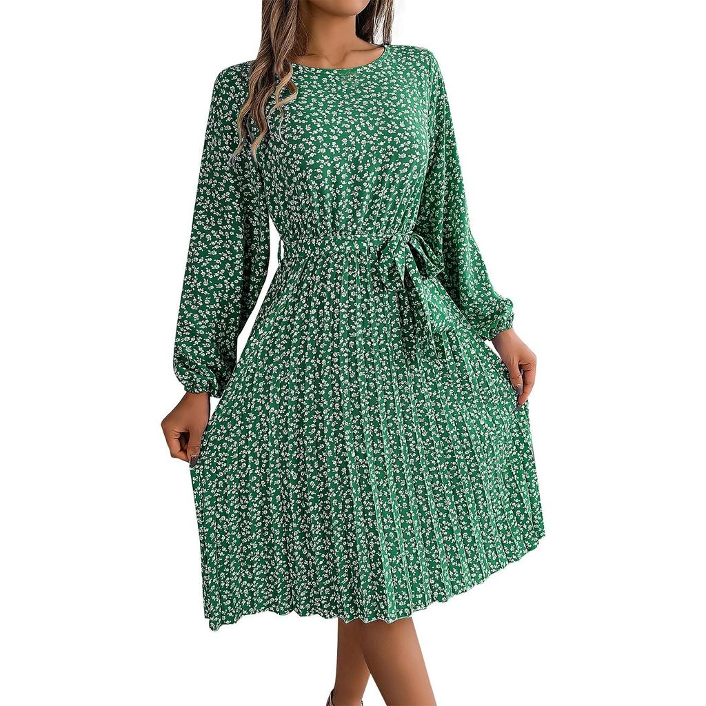 Женское повседневное и модное платье с длинными рукавами и плиссированной юбкой с цветочным принтом