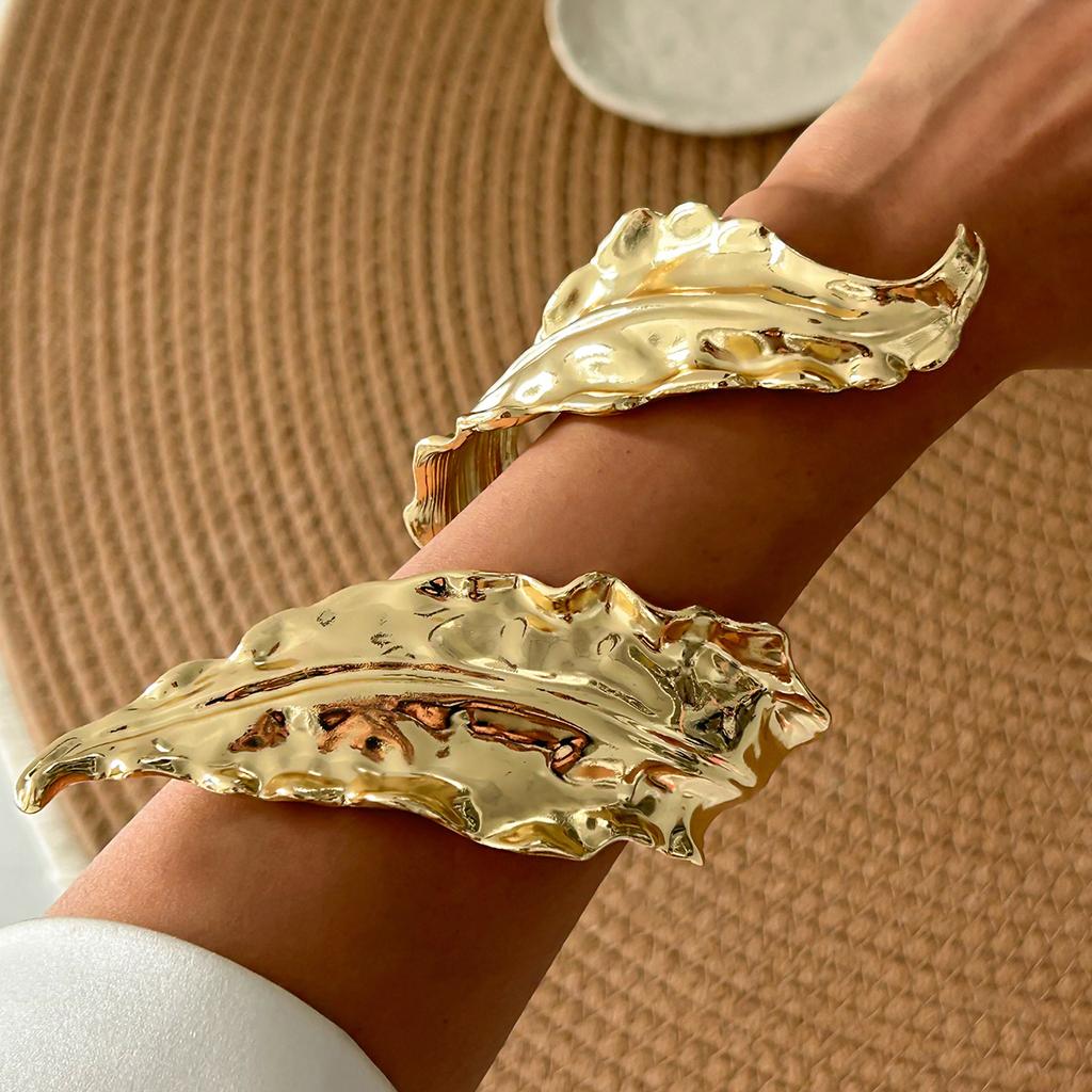 Преувеличенная геометрия металлических листьев Регулируемый открытый браслет для женщин мужчин Уличный хип-хоп панк ювелирное изделие Аксессуар для вечеринки