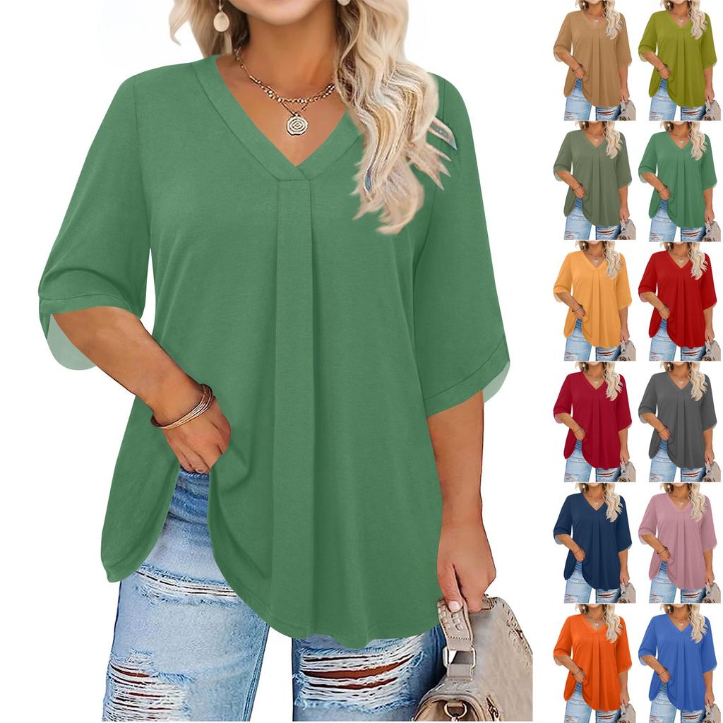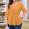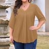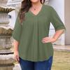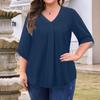 Женская мода Большой размер Однотонный топ с V-образным вырезом и рукавом три четверти