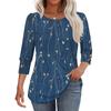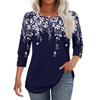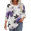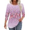 Женская мода Повседневная Винтажная Футболка Топ с круглым вырезом и рукавом в семь сложений с цветочным принтом