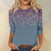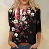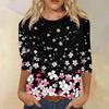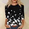 Женская модная повседневная футболка с рукавом семь восьмых, принтом и круглым вырезом