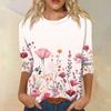 Женская модная повседневная футболка с рукавом семь восьмых, принтом и круглым вырезом — купить товар онлайн с бесплатной доставкой по всему миру!