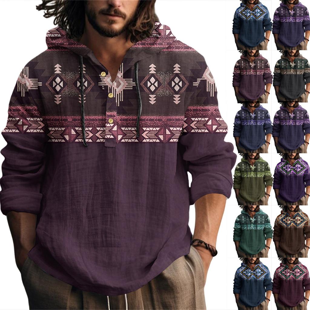 Мужская рубашка с принтом из хлопка и льна с капюшоном, с длинными рукавами, повседневная одежда для весны и лета — купить товар онлайн с бесплатной доставкой по всему миру!
