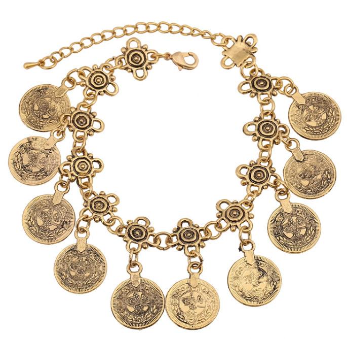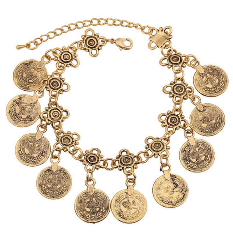 Вечеринка Хиппи Бохо Пляж Турецкие Украшения Золотой цвет Монета Винтаж Богемия Резные Монеты Браслеты Манжеты для Женщин pulseras