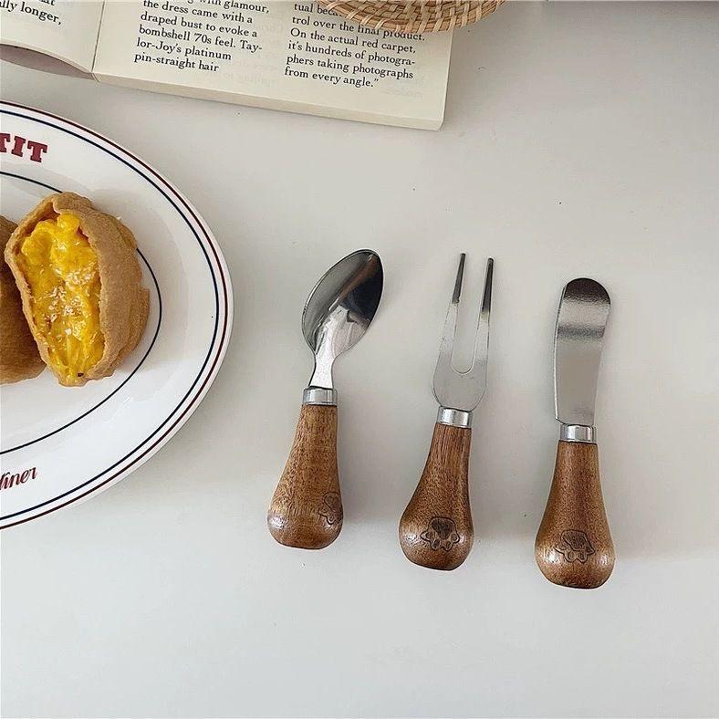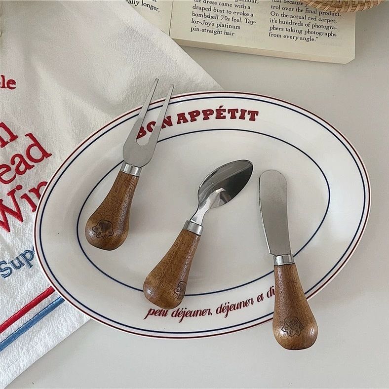 Пищевая нержавеющая сталь Нож для сыра Масло Масло Нож для сыра Нож для намазывания Нож для джема Деревянная ручка Нож для масла Набор из трех предметов
