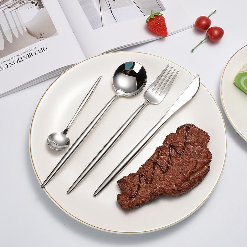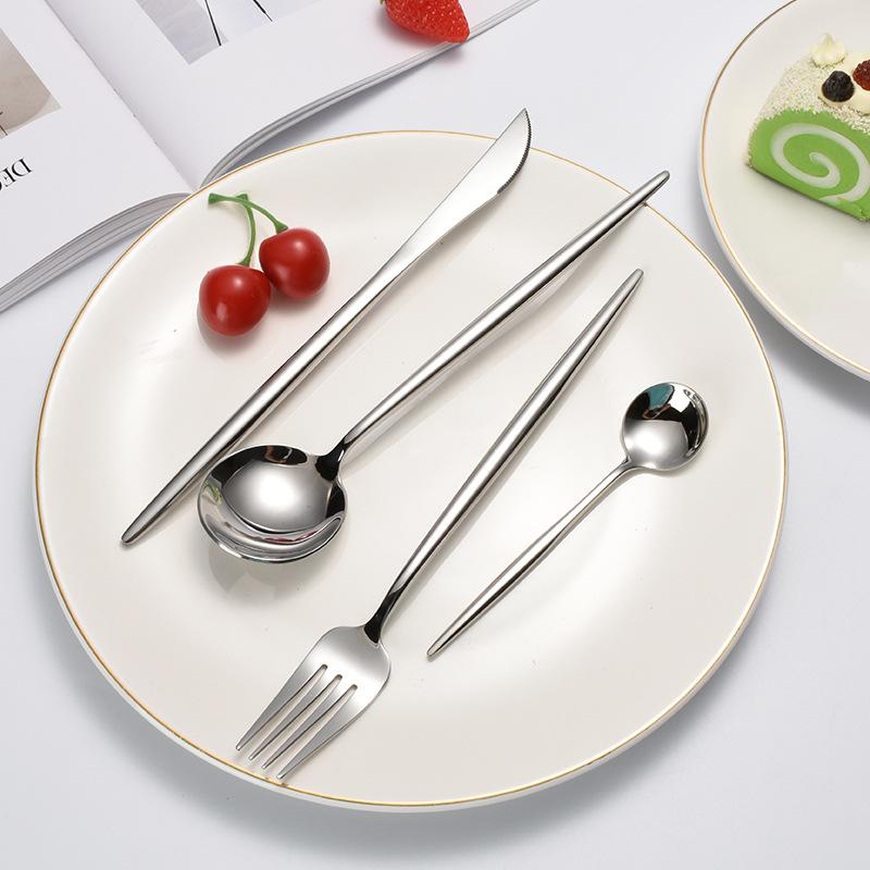 Нержавеющая сталь 304, зеркальная посуда, нож, суповая ложка, ручка вилки, утолщенный нож, набор из четырех предметов: нож, вилка и ложка