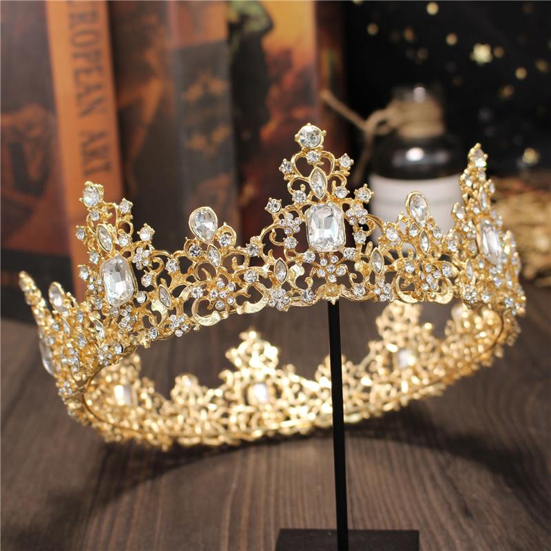 Барочная невеста свадебная корона головной убор Цвета Металл Кристалл круг Тиары Украшения для волос Королева Король Диадема Головные украшения