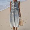 Женское модное повседневное платье без рукавов с круглым вырезом и цветочным принтом, элегантное, темпераментное