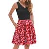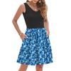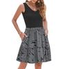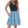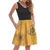 Женское летнее модное повседневное платье без рукавов с V-образным вырезом, плиссированное в стиле пэчворк, винтажный цветочный принт, жилет с карманом