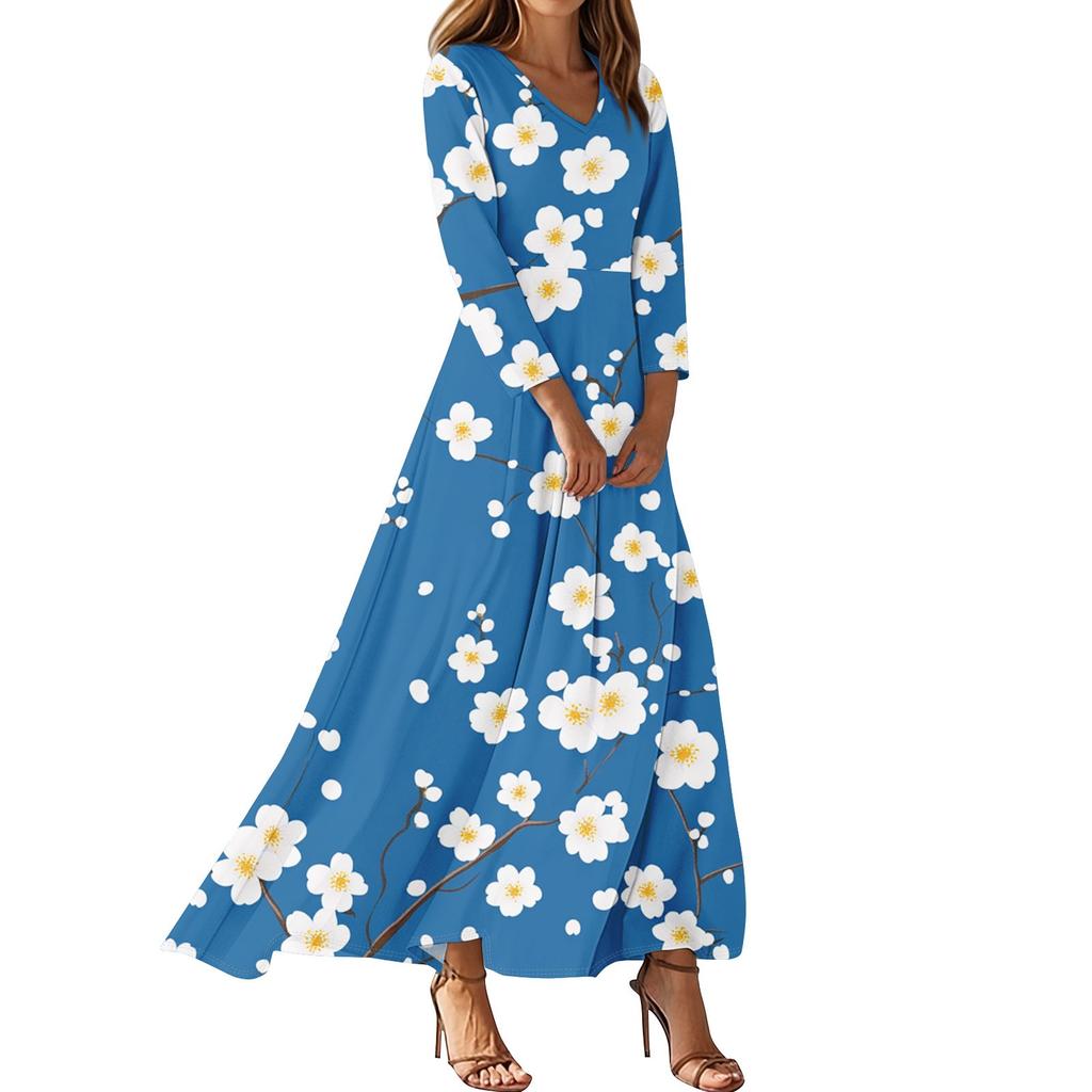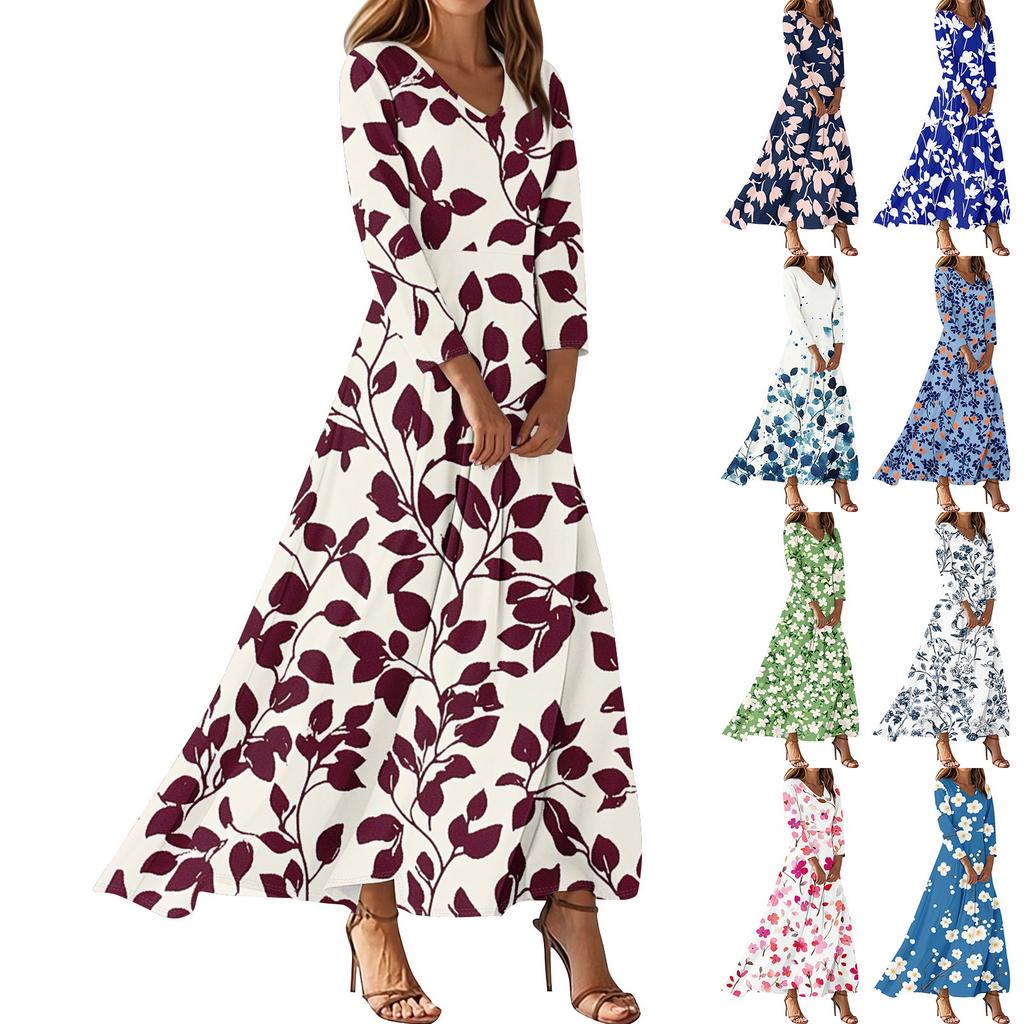 Женское модное платье с рукавами три четверти, свободного кроя, с удобным цветочным принтом