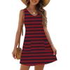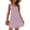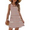 Женское модное повседневное летнее платье без манжет с карманом, V-образным вырезом и полосатым принтом, пляжный сарафан