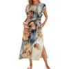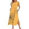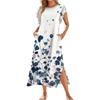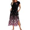 Женское модное летнее повседневное пляжное платье с плиссированными рукавами, свободным ретро-цветочным принтом, короткими рукавами, круглым завязкой и карманом