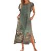 Женское модное летнее повседневное пляжное платье с плиссированными рукавами, свободным ретро-цветочным принтом, короткими рукавами, круглым завязкой и карманом — купить товар онлайн с бесплатной доставкой по всему миру!
