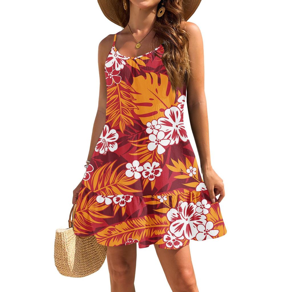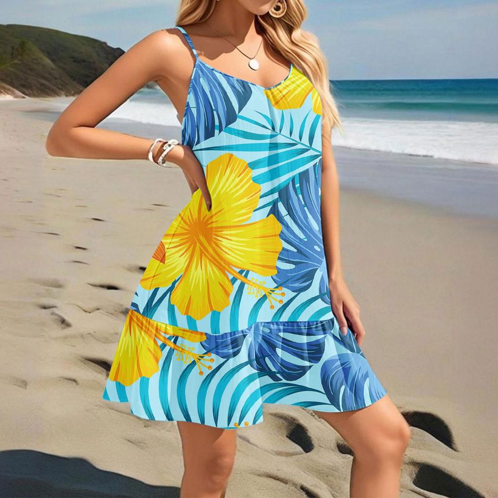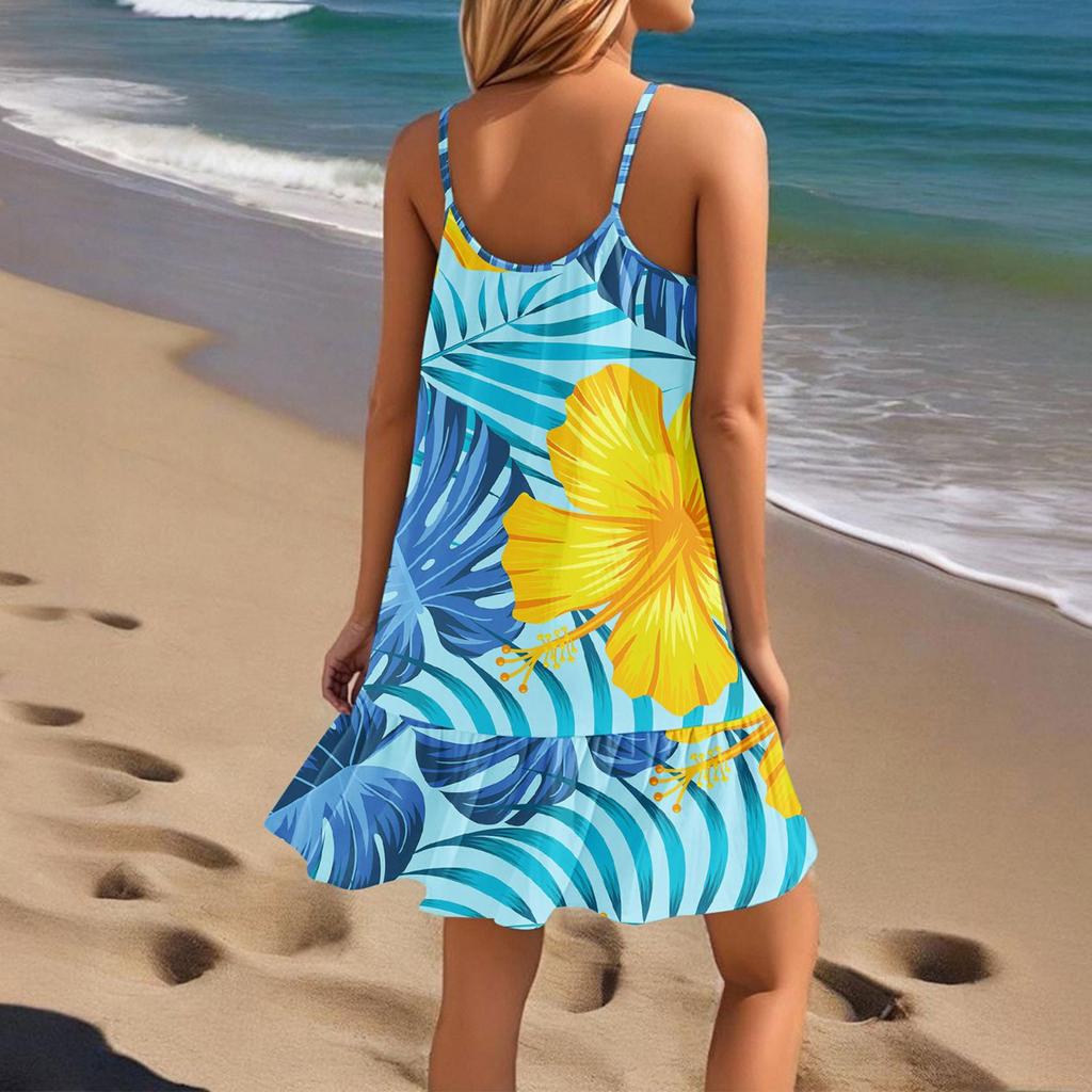 Женское платье без рукавов, свободное, повседневное, темпераментное, гавайское, цветочное, пляжное платье