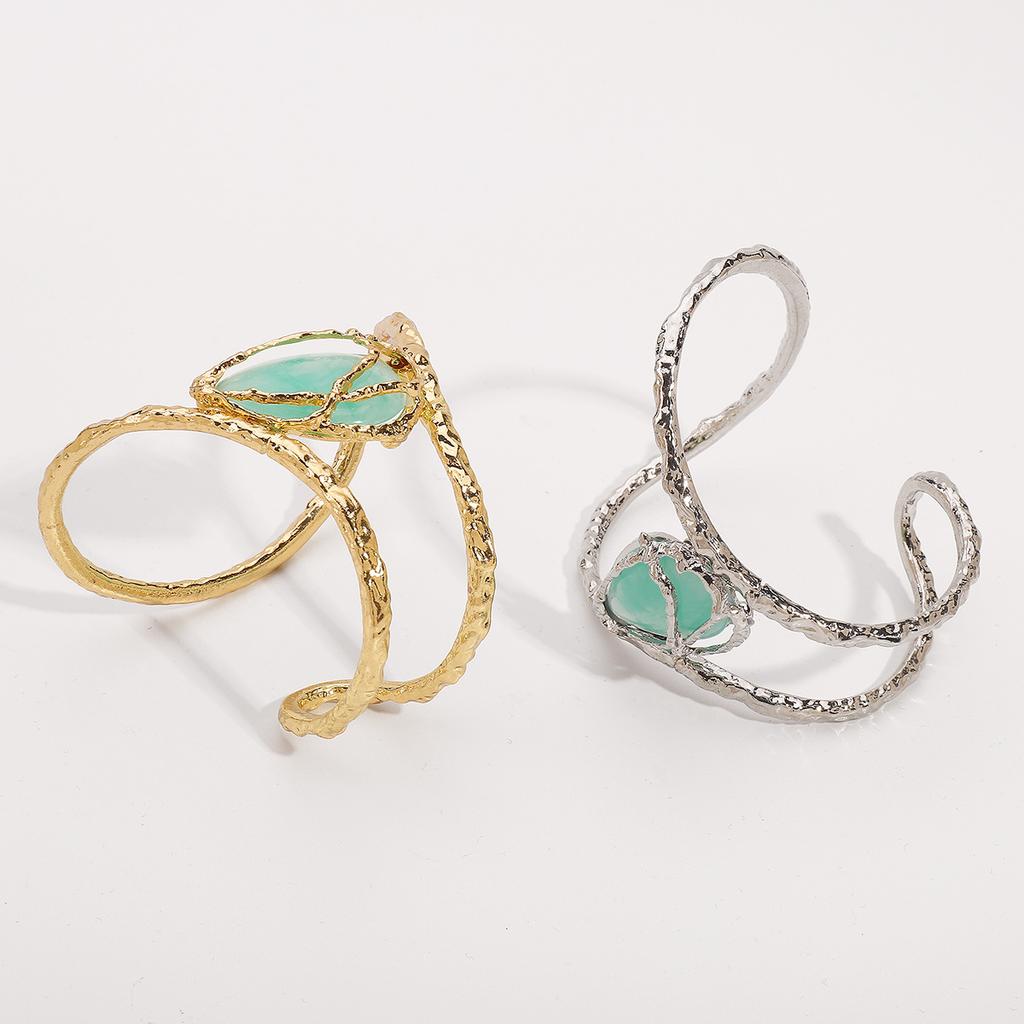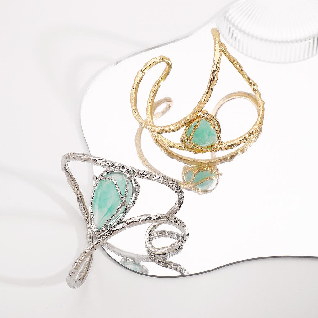 Модный браслет-манжета с узором из текстуры лавы, нестандартное отверстие, золотой цвет, синие каменные браслеты для женщин, ювелирные изделия, модный подарок