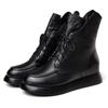 Зимние ботинки из натуральной кожи, женская обувь, ботинки на платформе с круглым носком, увеличивающие рост, для отдыха, швейные ботинки на платформе