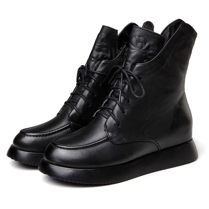 Зимние ботинки из натуральной кожи, женская обувь, ботинки на платформе с круглым носком, увеличивающие рост, для отдыха, швейные ботинки на платформе — купить товар онлайн с бесплатной доставкой по всему миру!
