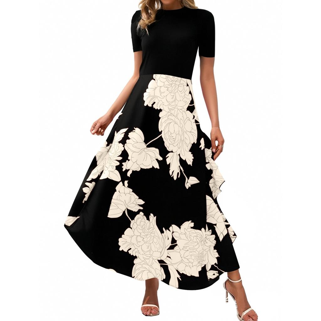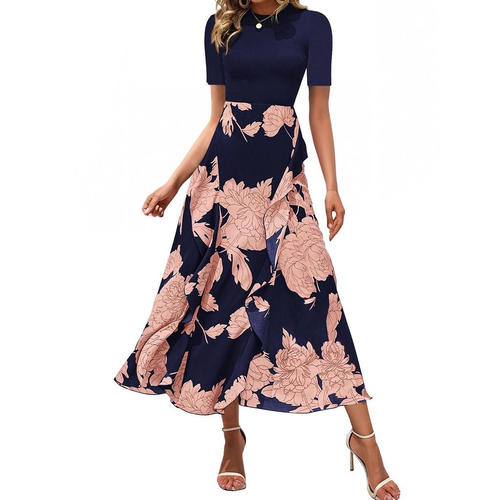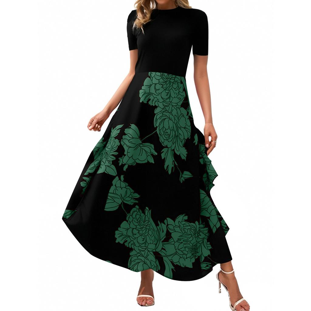 Женское платье макси с цветочным принтом, повседневное, с круглым вырезом, короткими рукавами, оборками, струящееся, коктейльное, свадебное, для гостей