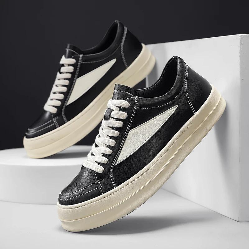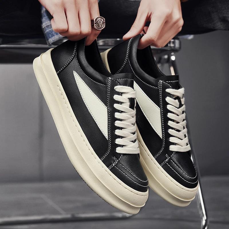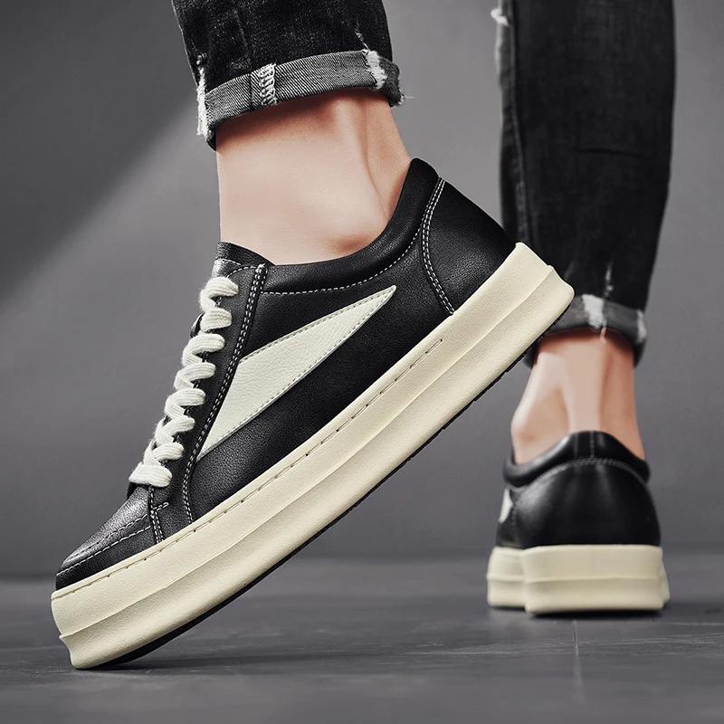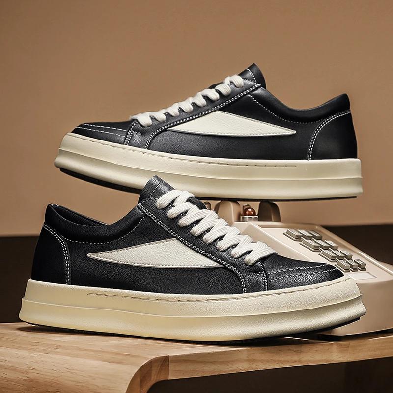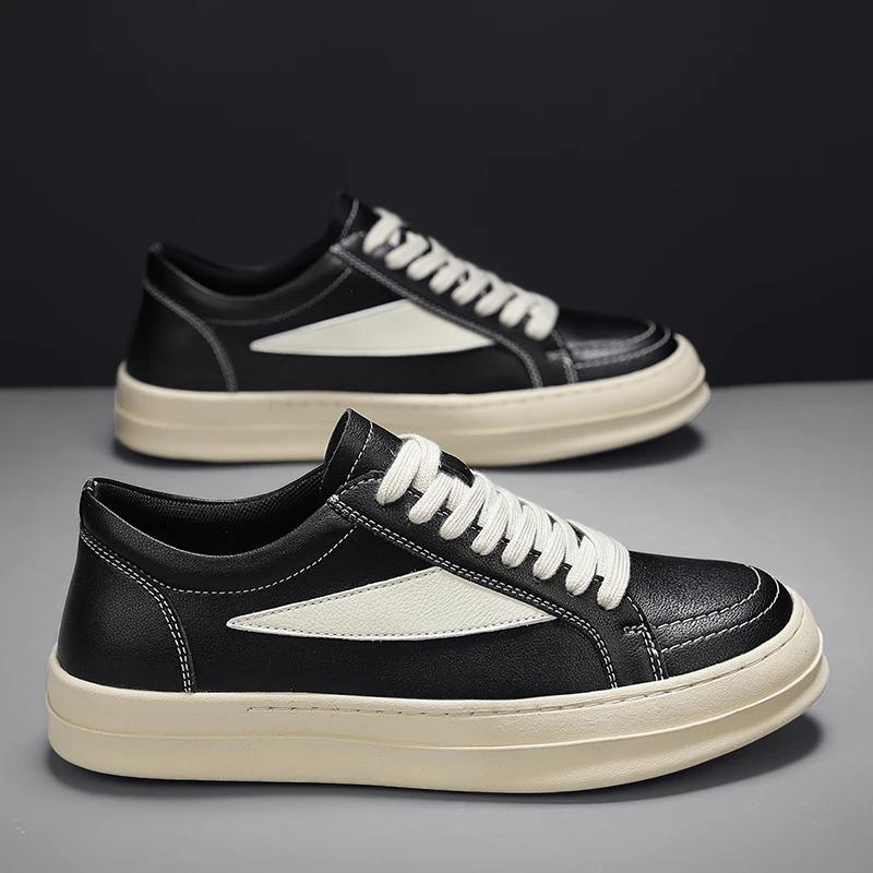 2025 Новые мужские повседневные кожаные универсальные кроссовки Высокое качество Уличные Нескользящие Туфли для скейтборда Классическая мода Плоские Дизайнерские туфли