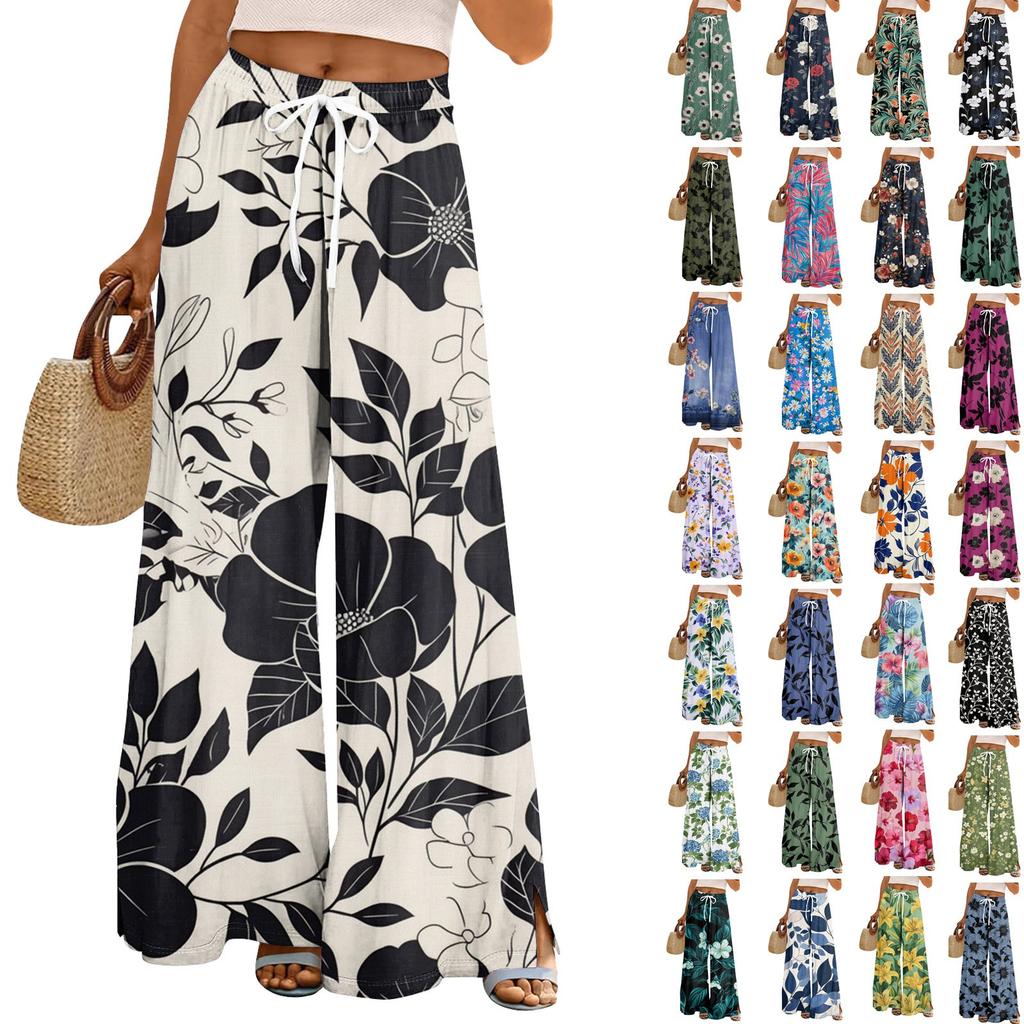 Женские свободные повседневные брюки с цветочным принтом и широкими штанинами, с эластичной талией на кулиске и карманами — купить товар онлайн с бесплатной доставкой по всему миру!