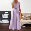 Легкое хлопковое льняное платье для женщин, летнее, повседневное, без рукавов, с воротником-лацканами на пуговицах
