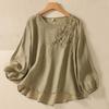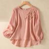 Женская однотонная хлопковая и льняная футболка с длинными рукавами и вышивкой в стиле ретро с дышащей тканью и круглым вырезом