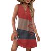 Женское модное ретро-платье в стиле пэчворк с цветными блоками, V-образным вырезом, застежкой на пуговицы и карманом, пляжное летнее платье для отдыха